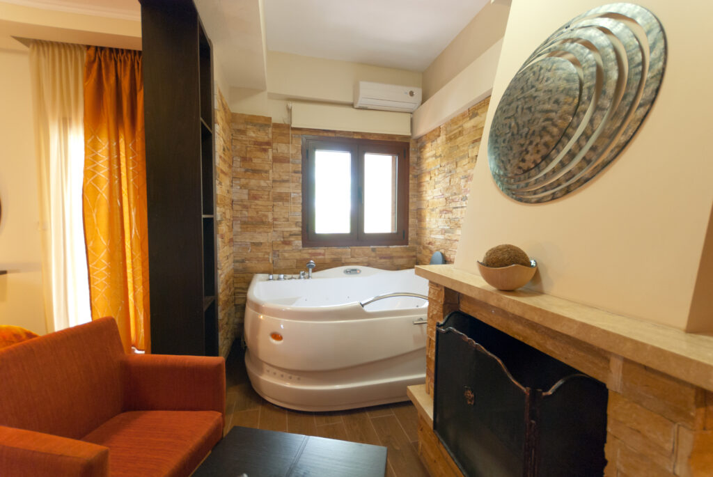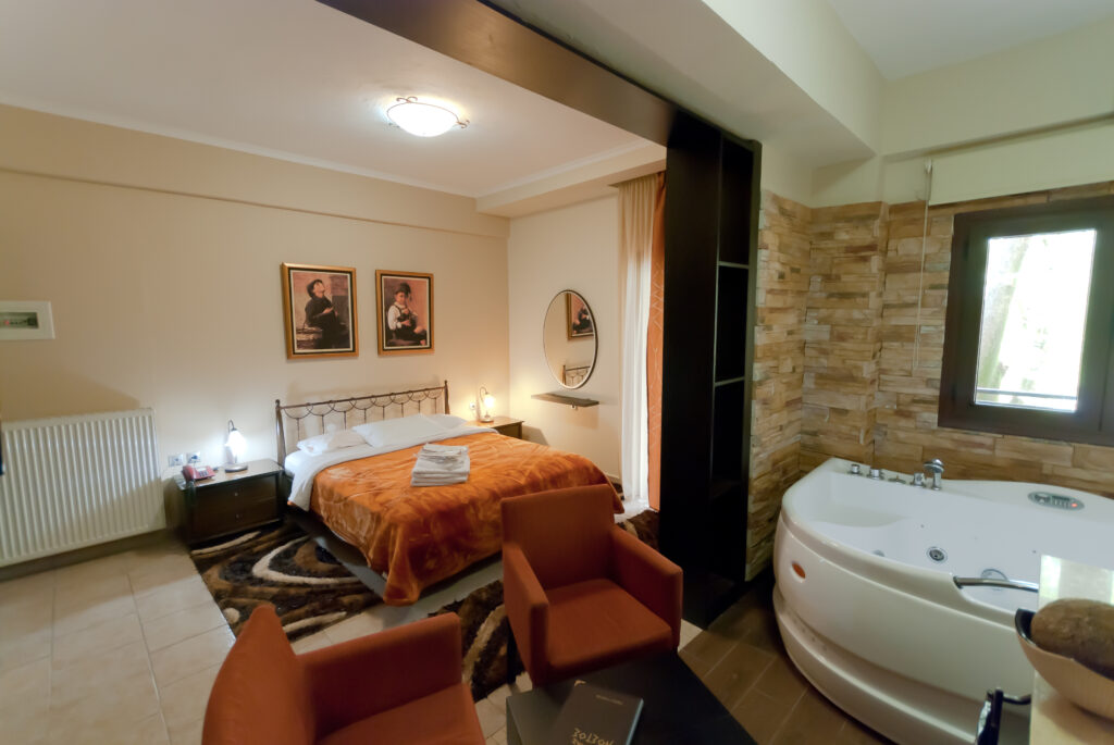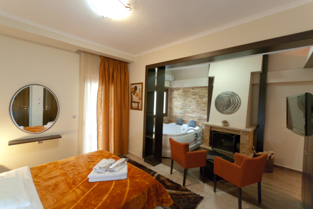 ΔΩΜΑΤΙΟ 204 Περιγραφή Δωματίου Αυτό το άνετο δωμάτιο προσφέρει θέα στον μπροστινό κήπο για τα καλοκαιρινά βραδάκια και την θαλπωρή του τζακιού όταν ο καιρός αγριεύει.